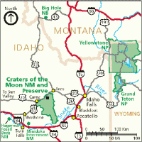 Craters of the Moon is a protected area which features are volcanic and represent one of the best-preserved flood basalt areas in the continental United States.
